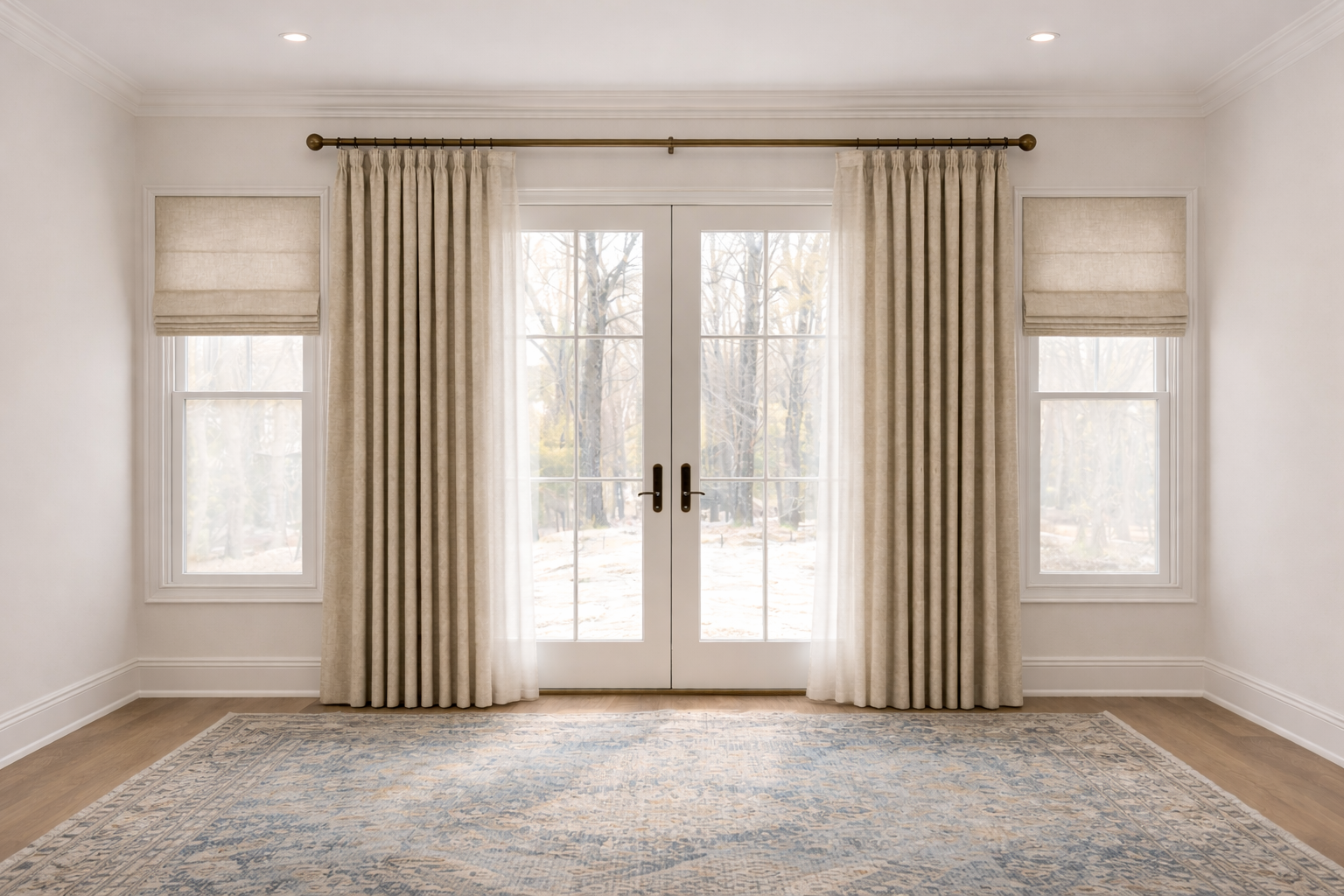 That does not mean every window treatment must be identical. Instead, the selections should feel related — through fabric palette, tone, proportion, and overall character.
